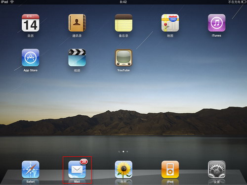 7、 账户创建成功后回到iPad首页,点击“Mail”进入Mail客户端进行收发邮件的操作。