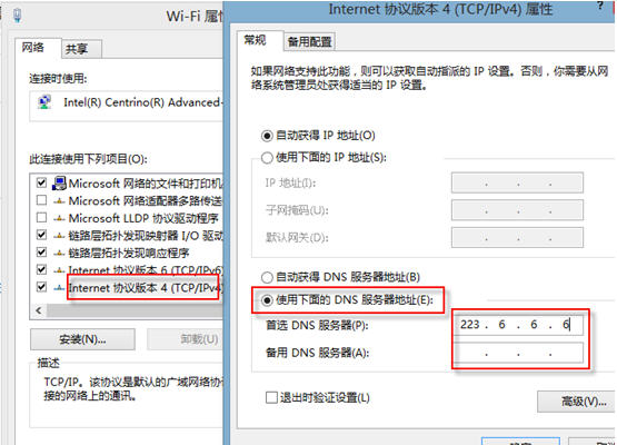 按第一步操作,如正常就进入第二步进行相关排查,如果DNS解释不正常(即返回的IP不是52.8.239.192/52.8.52.154/52.74.103.30/52.74.147.196/54.77.146.58),则可尝试打开本机的“开始-控制面板-选择链接的网络-网络状态-属性-internet协议属性”选择“使用下面DNS服务器”,设置公网DNS地址:223.6.6.6或223.5.5.5或202.96.128.166,然后按第1步的操作再次尝试,确认dns解析的ip是否正确。